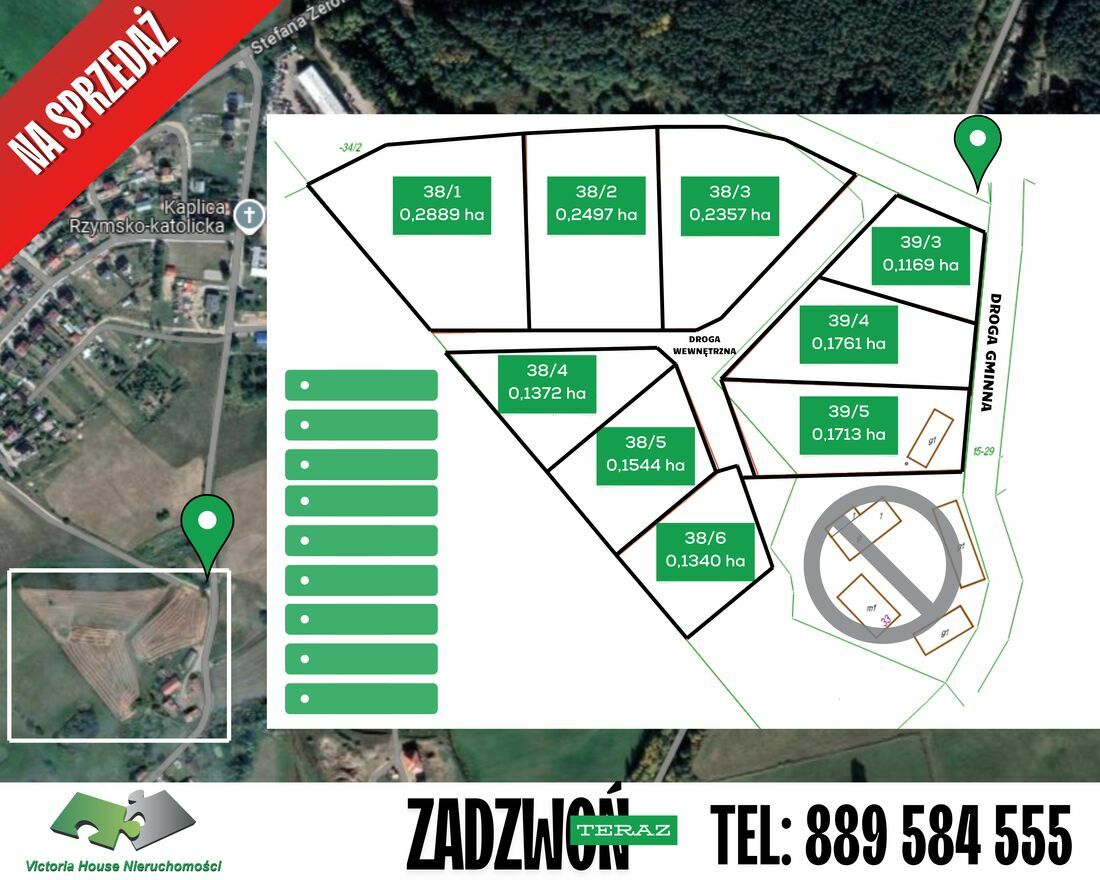 Działka 38/3 o pow. 0,2357 ha wraz z działką 39/1 o pow. 0,0058 ha za cenę 75.000,00 zł